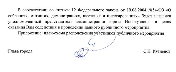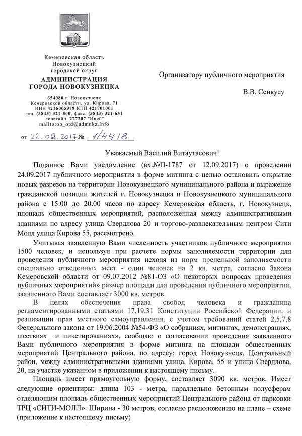 Администрация Новокузнецка, на словах поддерживая требования граждан, на деле запретила ("не согласовала") проведение митинга. Инициаторы обратились в суд и добились решения в свою пользу.