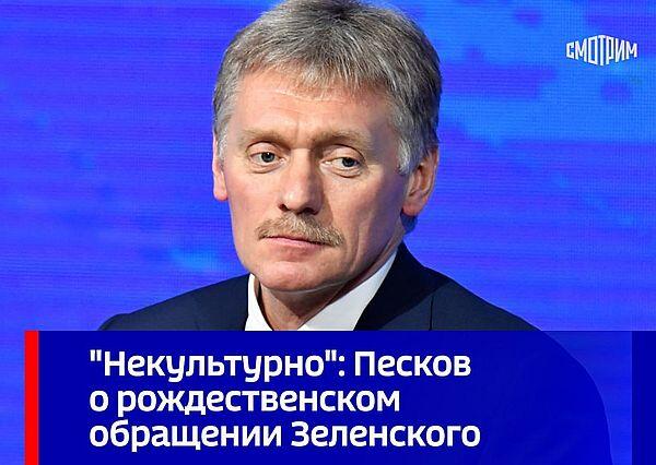 "Некультурно, озлобленно, похож на малоадекватного человека", - заявил Дмитрий Песков, комментируя речь Зеленского (цитата по ТАСС).