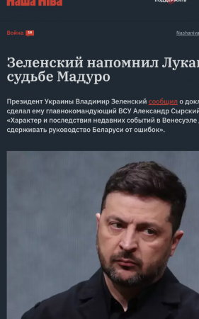 "Зеленский угрожает руководству Белоруссии, упоминая события в Венесуэле", - отмечает РИА Новости.