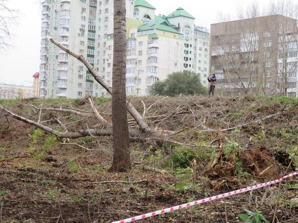 К моменту, когда взбудораженные горожане собрались на месте, поваленными оказались уже пара десятков стволов. Работы были прекращены.