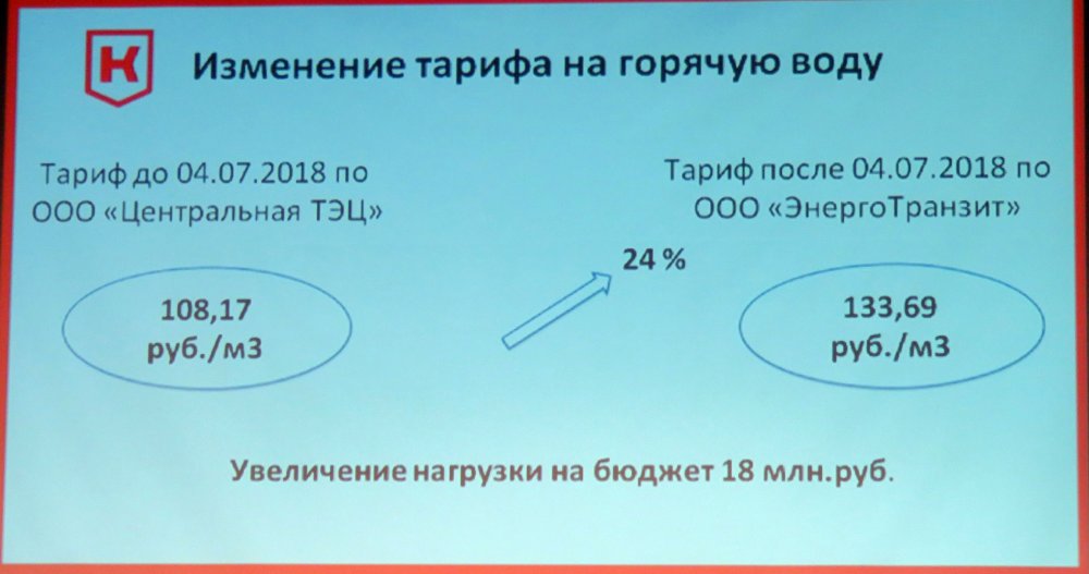 При этом тариф для населения останется прежним, а увеличение финансовой нагрузки в размере 18 миллионов рублей за полгода "упадет на бюджет". Плюс к тому, на 24,7 миллиона рублей вырастет нагрузка из-за нового тарифа на отопление.