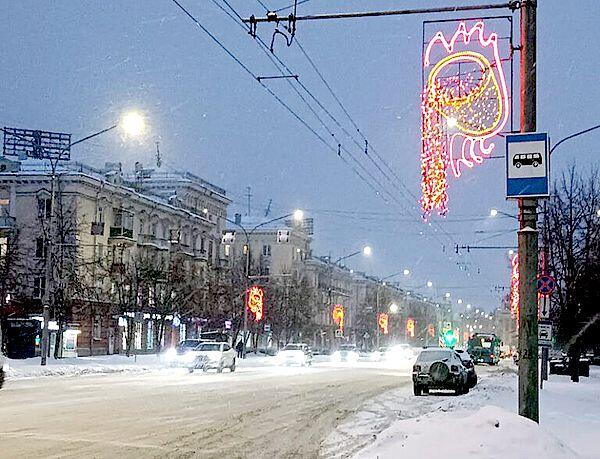 Вот что показалось странным: северная часть проспекта Металлургов, от площади Маяковского до пересечения с проспектом Строителей, сияет яркой красно-желтой иллюминацией, установленной на столбах. Помните, горожане ещё спрашивали, что это за фигуры и что они обозначают?