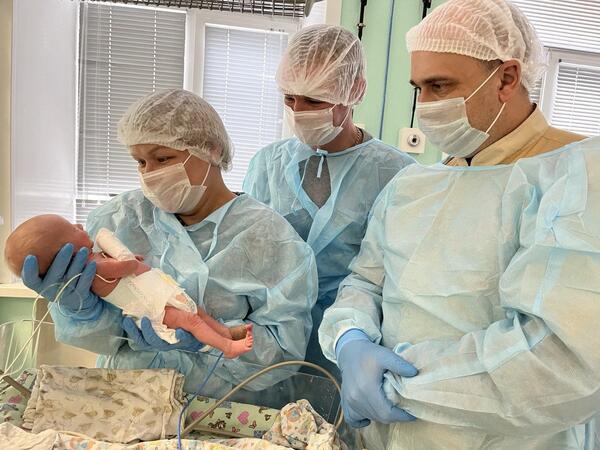 Первой на свет появилась Татьяна (2 кг 150 гр), затем — Кирюша (2 кг 300 гр). Все новорождённые нуждались в срочной помощи. Медики провели реанимационные мероприятия, обеспечили оптимальный температурный режим и подключили малышей к аппаратам ИВЛ.