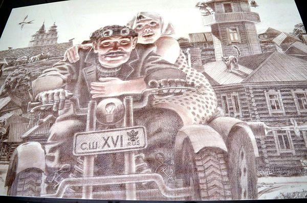 Смелые фантазии на темы Старого Кузнецка Сергея Шаталова (плывущий через Иванцевку вразмашку, летящий над Кузнецком на дельтаплане, мчащийся по улицам на мотоцикле с пышнотелой барышней) соседствуют с прозрачной зарисовкой Татьяны Никулиной “На остановке “Советская площадь”. Разные художники - разный взгляд на город. Одно это уже интересно. Напоминаю: у вас в запасе пара дней.