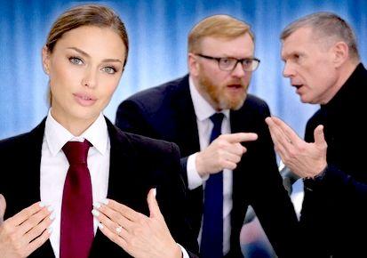 По информации news.ru, дочь бывшего шефа В. Путина А. Собчака Ксения Собчак включилась в самую скандальную интригу апреля "Боня против Соловьёва"