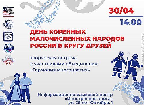 30 апреля в 14:00 эта возможность будет реализована на творческой площадке "День коренных малочисленных народов России в кругу друзей", которая пройдет в библиотеке "Иностранная книга" (ул. 25 лет Октября, 1).