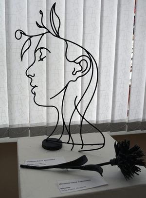 Понятно, что автор поначалу принялся воспроизводить банальности, что не женское это дело, но потом тема как-то сама собой сошла на нет. Да и поздновато сегодня спрашивать, как это они “дошли до жизни такой” - Елена (она одна представляла творческую группу) уже десять лет работает с металлом, хотя когда-то была библиотекарем. А потом пробовала заняться резьбой по дереву, но, говорит, работать с металлом нравится больше.
