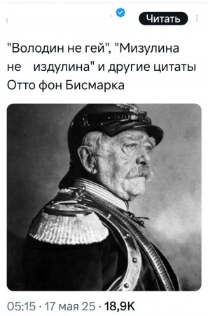 «Когда у меня появляется желание поговорить с идиотом — я вызываю к себе Мединского» © Отто фон Бисмарк