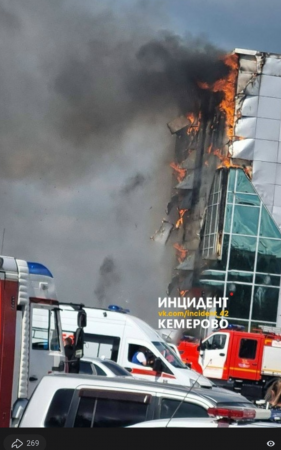 Сегодня загорелся крупный ТРЦ в Кузбассе .