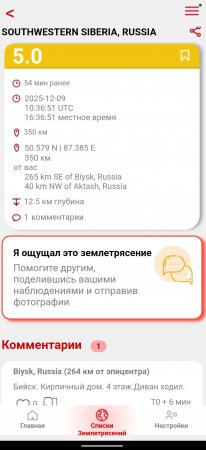 Час назад в Юго-Западной Сибири землетрясение 5 баллов.