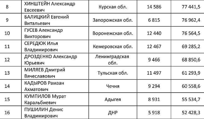 Поднявшись на 11-е место и опередив таких "монстров", как Денис Пушилин и Рамзан Кадыров.