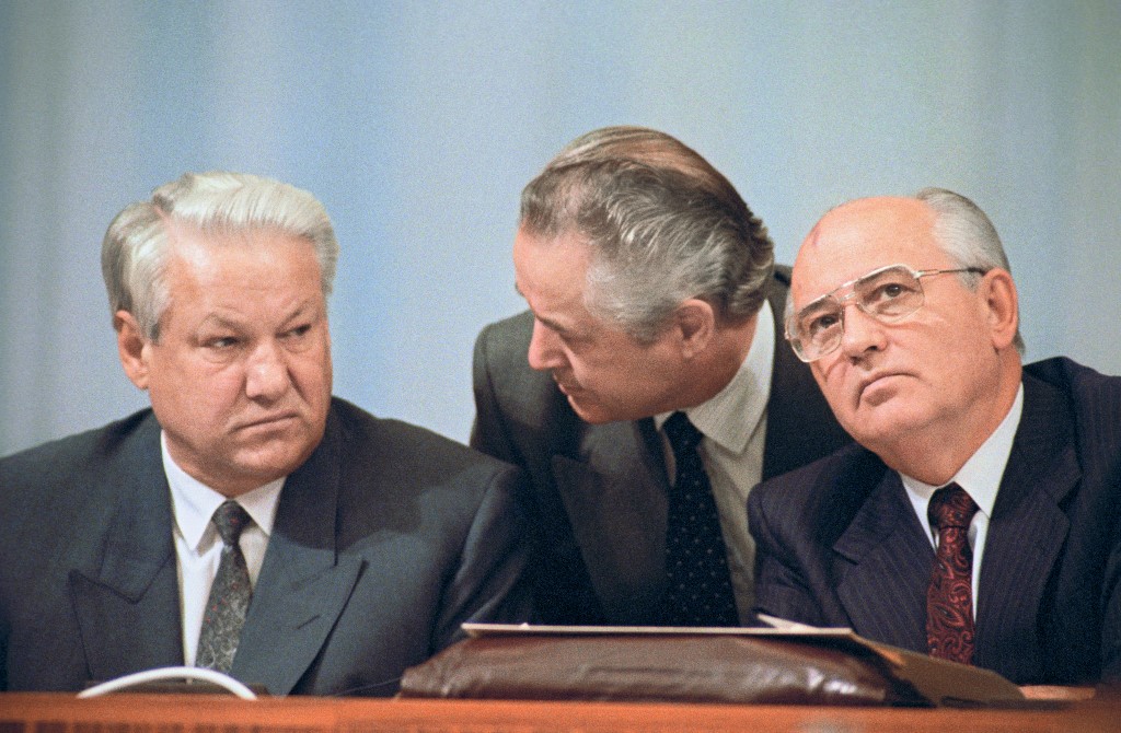 Как свидетельствует близко знавший обоих Михаил Полторанин, Горбачев и Ельцин лишь имитировали, что являются политическими противниками. Фото: Анатолий Морковкин/ТАСС.
