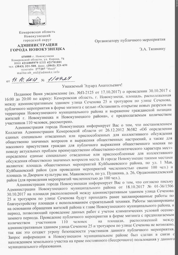 По словам активиста Владимира Горенкова и жителей Загорского сельского поселения, глава администрации Новокузнецкого района Дмитрий Беспалов должен уйти с занимаемой должности, потому что дискредитировал себя. Как минимум – «беспечным поведением». Тем, что защищал не людей, а угольную компанию, факты незаконной деятельности которой уже выявлены. Так уже пишут местные СМИ.
