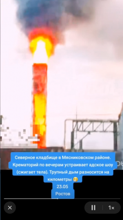 В сети опубликовано видео, на котором россиянин рассказывает о высоких темпах работы крематория в российском Ростове-на-Дону.