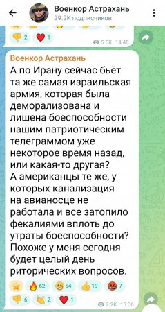 «Храброму иранскому народу – час вашей свободы близко. Пока не выходите из домов, будут атаки, бомбы будут падать везде, но когда мы закончим – будьте готовы взять власть в свои руки».